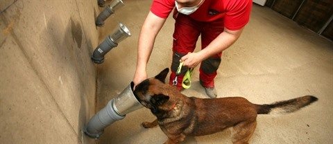 Aux côtés de son maître, l’animal viendra alors respirer cette odeur avant de récupérer son jouet, et l’associera donc au jeu. Puis, le bocal sera installé dans l’un des supports de la salle de détection. Le but pour le chien sera alors de "marquer" par la position assise ou couchée le support contenant la compresse positive, avant de se voir récompensé avec son jouet. Un processus qui pourra être répété une cinquantaine de fois par jour durant les prochaines semaines.