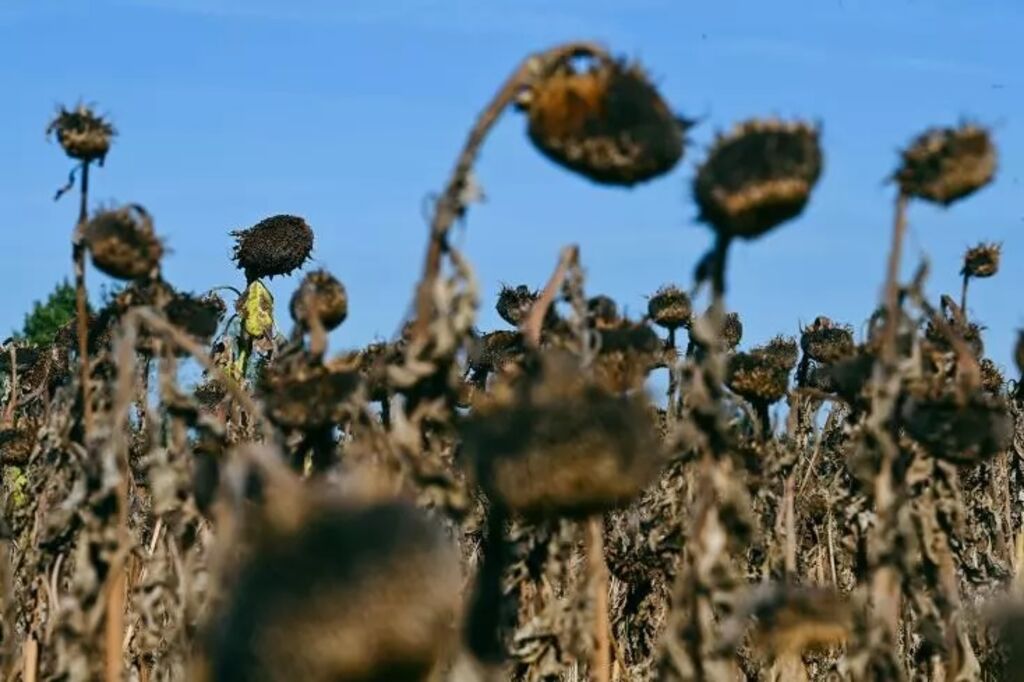 | Des tournesols flétris par la sécheresse dans un champ près de Lyon le 24 août 2022. |