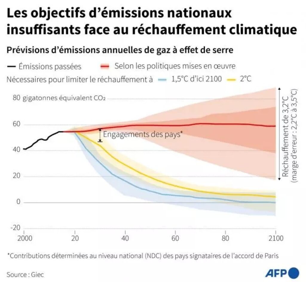 Les deux premières versions de ce plan, datant de 2011 et 2018, ne prenaient en compte que l'hypothèse des objectifs de l'accord de Paris, visant à limiter le réchauffement de la planète en dessous de 2°C et de préférence à 1,5°C par rapport à la période pré-industrielle, soit une hausse de maximum +3°C pour la France. Mais cela est-il encore réaliste, alors que la France en est déjà à 1,7°C ?