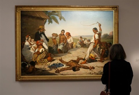 | La toile "Le châtiment des quatre piquets dans les colonies" de Marcel Antoine Verdier, présenté à l'exposition "Le modèle noir de Géricault à Matisse", au musée d'Orsay, le 25 mars. |