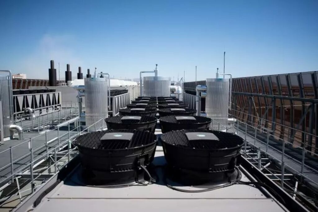 | Système de refroidissement sur le toit d'un data center, à Marseille, le 8 juillet 2020. |