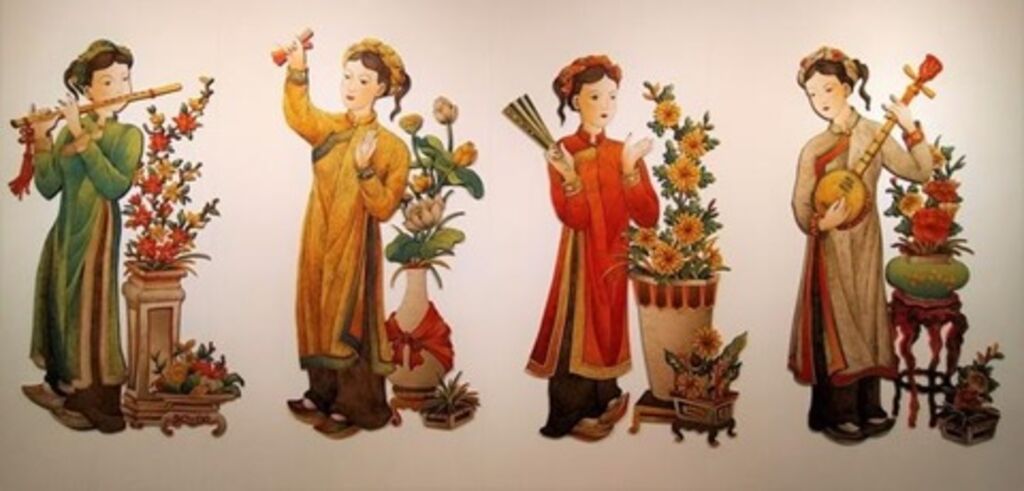| Les quatre jeunes filles - estampe de Hàng Trông. |