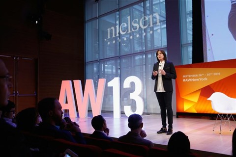 | Megan Clarken, vice-présidente exécutive de l'institut Nielsen, lors de la conférence Advertising Week à New York, le 27 septembre. |