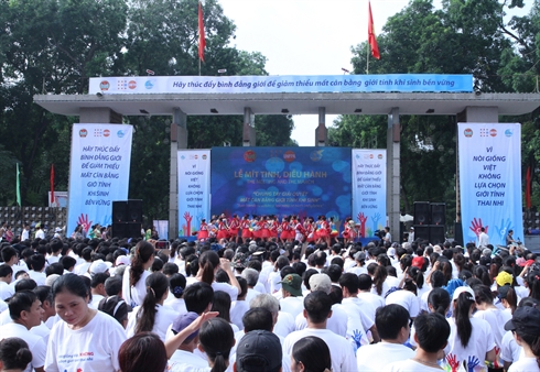 | Meeting pour la mise en route de la campagne "Ensemble pour régler le déséquilibre du ratio des sexes à la naissance", le 28 septembre à Hanoi. |