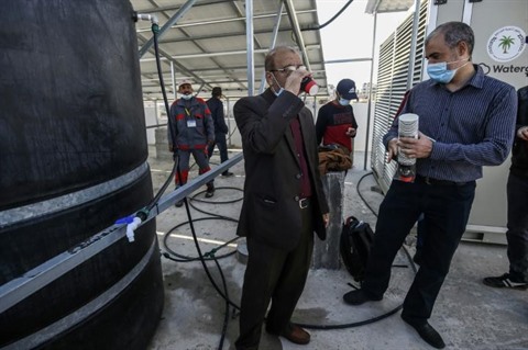 Sur le toit d'un immeuble de Khan Younès, dans le sud de la bande de Gaza, une "révolution" se prépare discrètement. Une mosaïque de panneaux solaires alimente une énorme machine bourdonnante aux airs de groupe électrogène, venue d'Israël et qui retire l'humidité de l'air pour la transformer en eau potable.