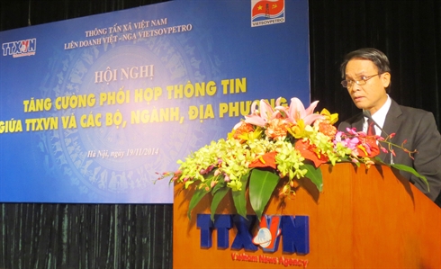 | Le directeur général de l'Agence Vietnamienne d'Information (VNA), Nguyên Duc Loi, s'est adressé à la conférence pour une coordination renforcée dans l’information entre la VNA et les ministères, branches et localités, le 19 novembre à Hanoi. |