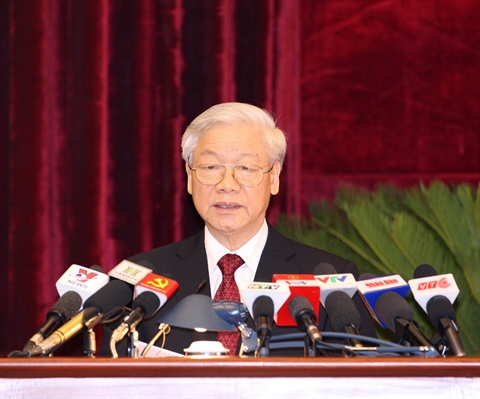 | Le secrétaire général du PCV, Nguyên Phu Trong, lors de la cérémonie de clôture du 12e plénum du Comité central du PCV, le 11 octobre à Hanoi. |