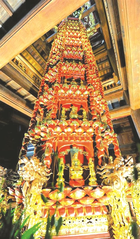 | La tour de lotus de neuf étages symbolisant le nirvana, l'état d'illumination qui habite Amitabha a été reconstruit en 2014. |