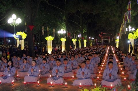 | Une prière rituelle pour la paix dans le pays a lieu pendant la fête du printemps à la pagode Côn Son. |