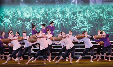| Un numéro artistique lors du concert "L’émulation est patriotique" en écho du dixième Congrès national d’émulation patriotique, le 9 décembre à Hanoï. |