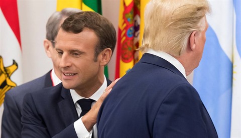 | Le président français Emmanuel Macron (gauche) et son homologue américan Donald Trump au Sommet du G20 à Osaka, le 28 juin. |