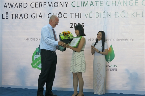 | Cérémonie de remise de prix du concours de connaissances sur le changement climatique, le 26 juin à Hanoi. |