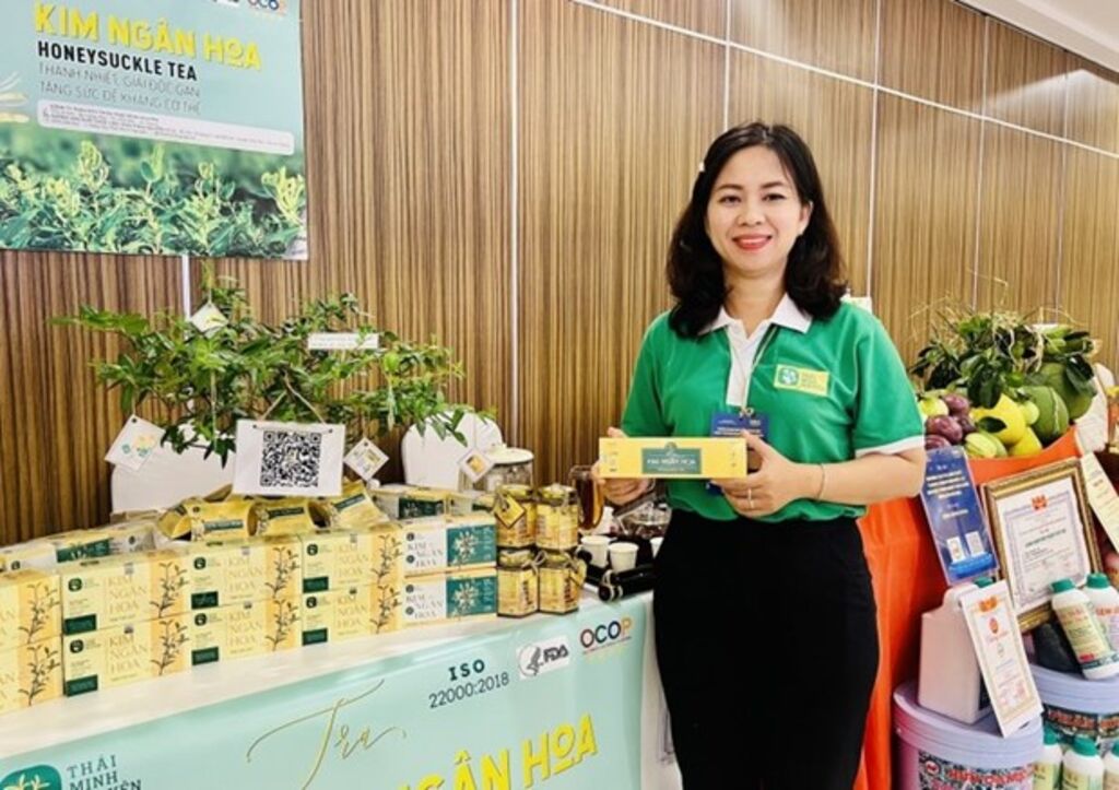 | Un stand de présentation du thé Kim Ngân Hoa de la société Thai Minh Nguyên. |