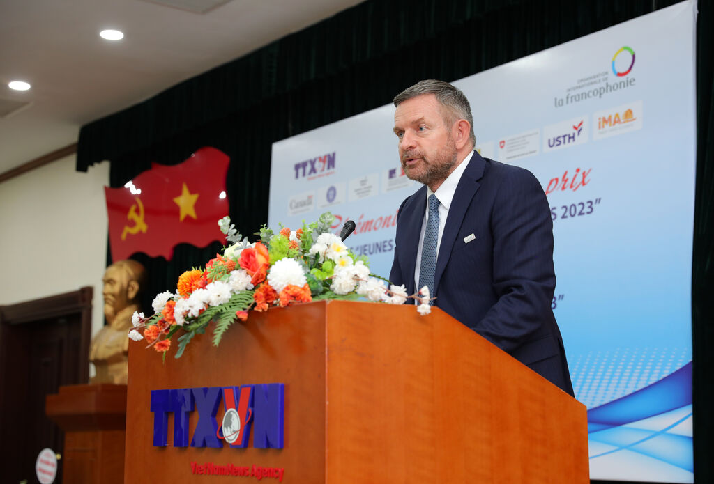 | Edgar Doerig, représentant régional pour l'Asie et le Pacifique de l'OIF, s'exprime lors de la cérémonie de remise des prix du concours, le 17 novembre à Hanoï. |