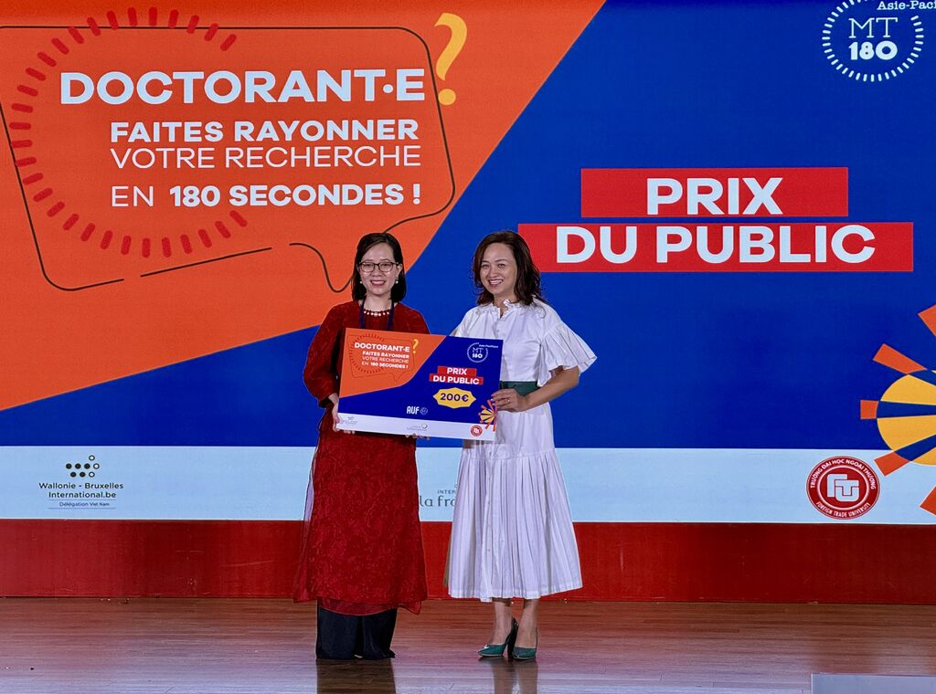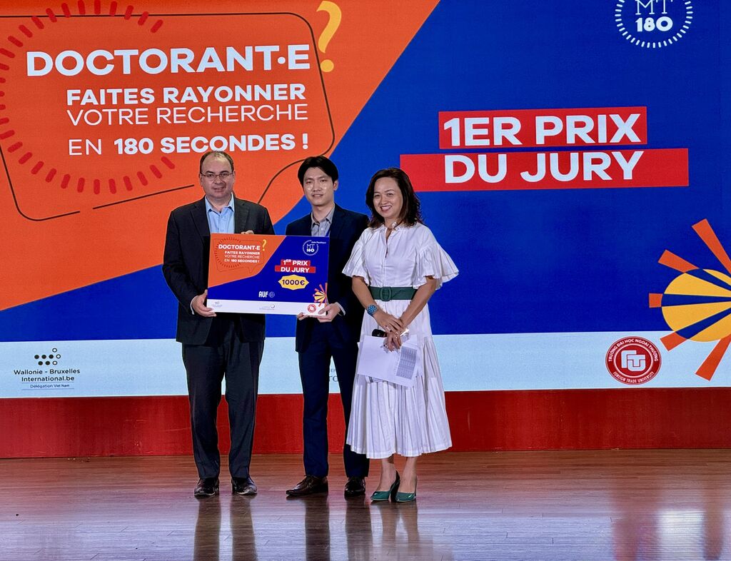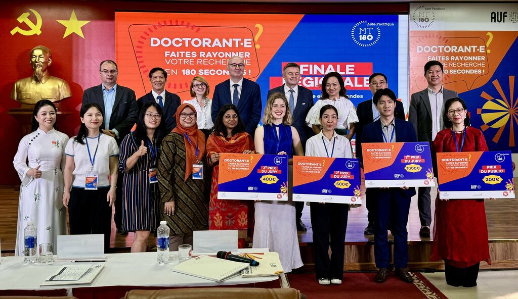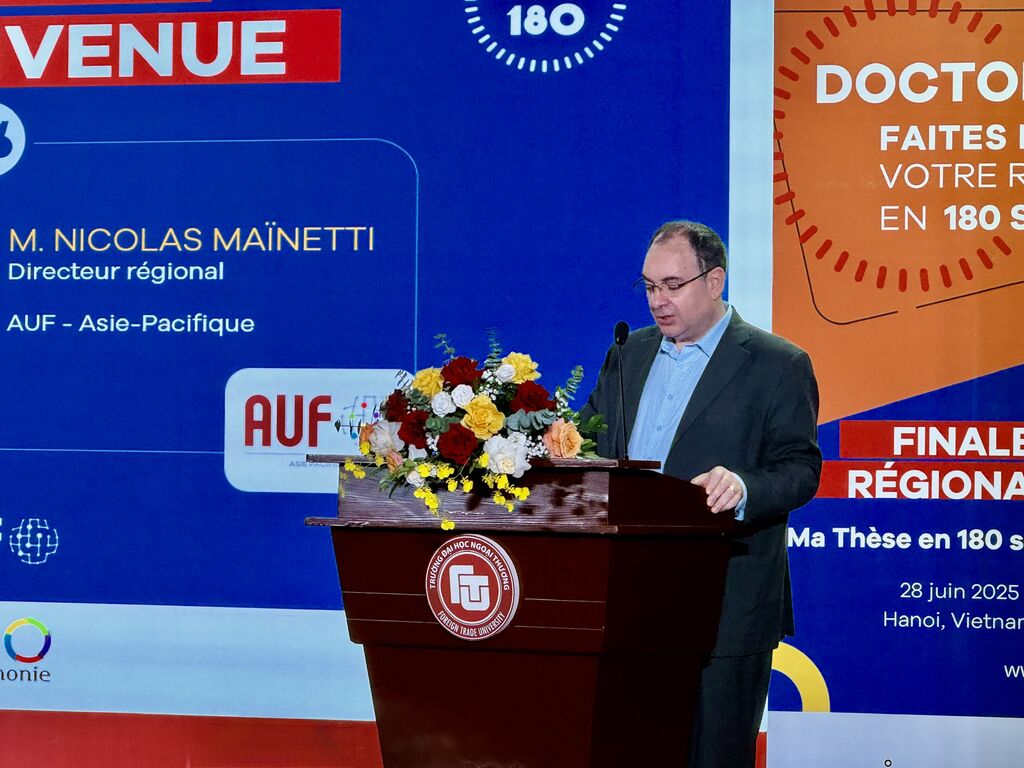 Le principe de MT180 est simple : dix finalistes - doctorants ou jeunes docteurs issus d'universités de sept pays de la région Asie-Pacifique - ont eu trois minutes chrono pour présenter leur sujet de thèse de manière ludique. "Trois minutes pour convaincre, pour captiver, pour transmettre la magie de la recherche à un public venu de tous horizons", a souligné Nicolas Maïnetti, directeur de l'AUF Asie-Pacifique, lors de son discours d'ouverture. Il a également souligné que cet "exercice est exigeant, mais ô combien essentiel, car il rappelle que la science n'a de sens que si elle est partagée."
