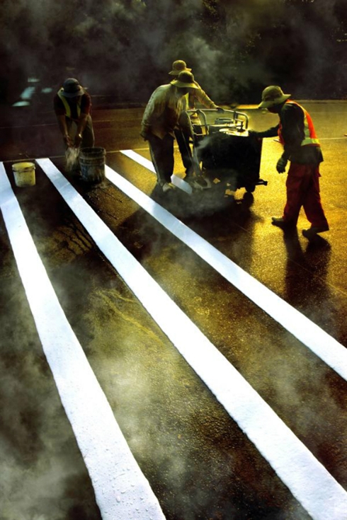 | Le cliché "Peinture des lignes d’une route" de Ngô Dinh Hoà, premier prix. Photo : VnExpress/CVN |
