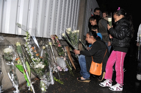 | Beaucoup de personnes déposent des fleurs devant le collège Ozar Hatorah à Toulouse (Sud-Ouest de la France) |