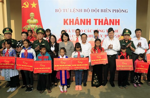 Le même jour, elle a assisté à la cérémonie d’inauguration du siège de travail de la commune de Tân Xuân, district de Môc Châu, province de Son La. Elle a offert cinq maisons et des vaches à certaines familles bénéficiaires de politiques sociales, et 200 bourses d’études du Fonds de patronage des enfants du Vietnam à des élèves en situation difficile des districts de Môc Châu et Vân Hô.