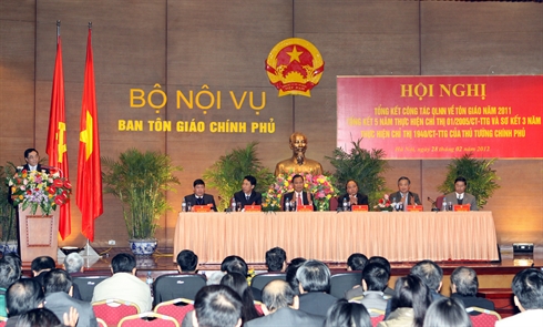 | Une conférence-bilan sur les tâches de la gestion publique des religions en 2011, tenue le 28 février à Hanoi. Photo : Trong Duc/VNA/CVN |