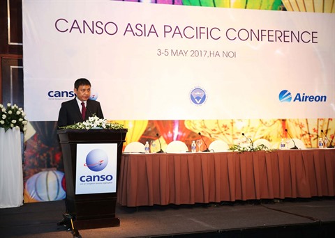 | Pham Viêt Dung, directeur général de VATM, prenant la parole lors de la conférence de la CANSO. |