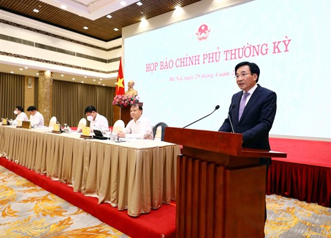 | Le ministre Trân Van Son, président du Bureau du gouvernement, s'exprime lors de la conférence de presse régulière du gouvernement. |