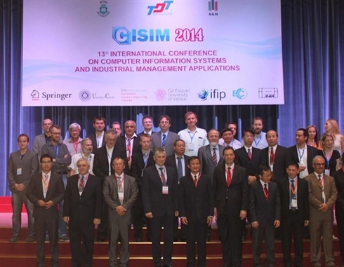 | Les délégués de la 13e Conférence internationale ayant pour thème "Les systèmes informatiques et leurs applications dans la gestion industrielle" (CISIM 2014), à Hô Chi Minh-Ville. |
