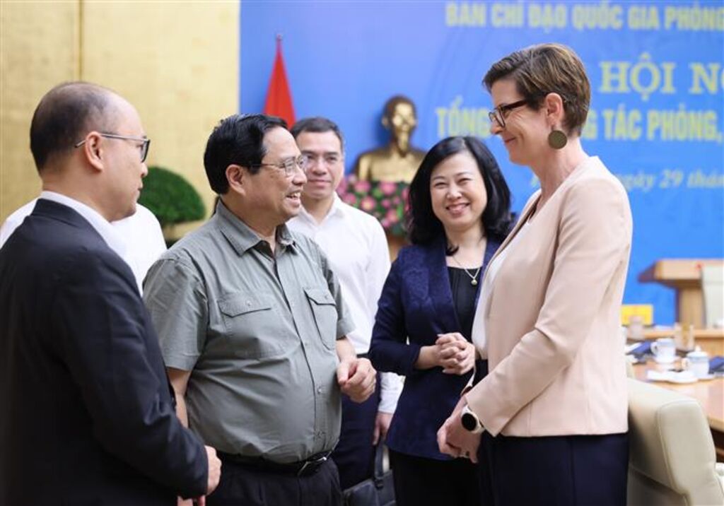 | Le Premier ministre Pham Minh Chinh (2e à gauche) rencontre Angela Pratt, représentante de l'OMS au Vietnam, lors de la conférence. |
