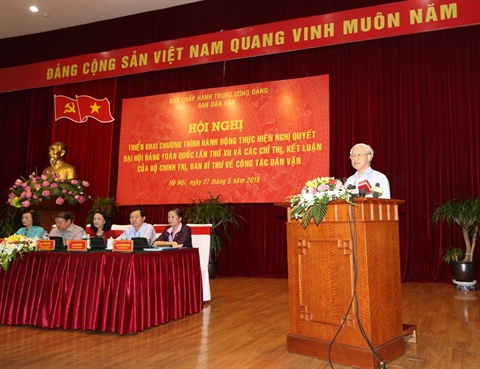 Lors de la conférence sur le programme d’action de l’exécution de la Résolution du XIIe Congrès national du PCV et des directives et conclusions du Bureau politique et du Secrétariat sur le travail de sensibilisation, tenue le 27 mai à Hanoi, le leader du PCV a estimé que la Commission centrale de la sensibilisation auprès des masses ont fait des efforts, de concert avec tout le parti, tout le peuple et toute l’armée, pour obtenir des acquis importants dans le développement socio-économique, la garantie de la défense et de la sécurité, l'intensification des relations extérieures, l’amélioration du niveau de vie de la population.