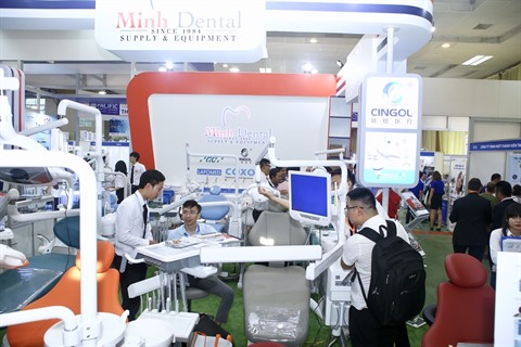 | Un stand à l'exposition internationale d'odontologie, le 21 août à Hanoï. |
