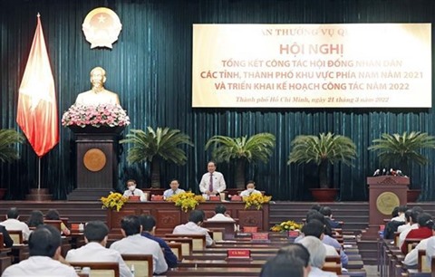 | Conférence pour faire le bilan des activités en 2021 et définir les tâches des conseils populaires des villes et provinces méridionales en 2022. |