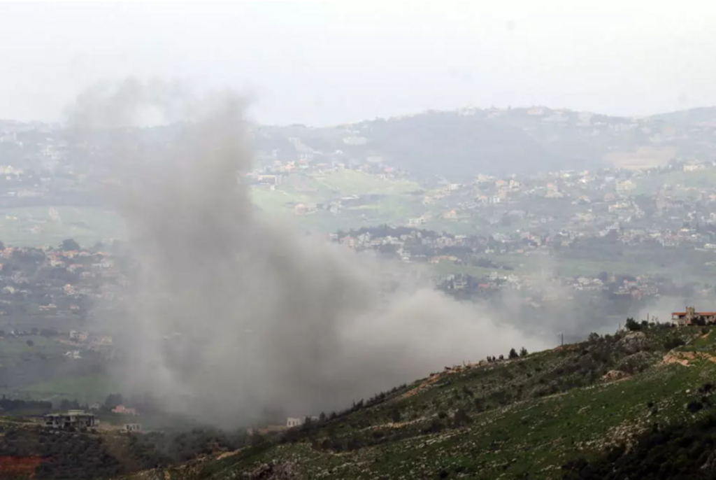 | Frappe israélienne sur le village de Yohmor, dans le Sud du Liban, le 30 mars. |
