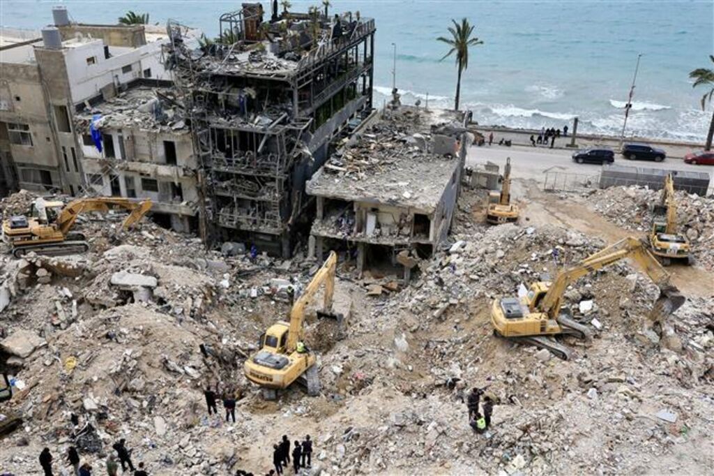 | Des secouristes recherchent des victimes des frappes aériennes israéliennes sur la ville de Tyr, dans le Sud du Liban, avant le cessez-le-feu appliqué le 19 avril. |