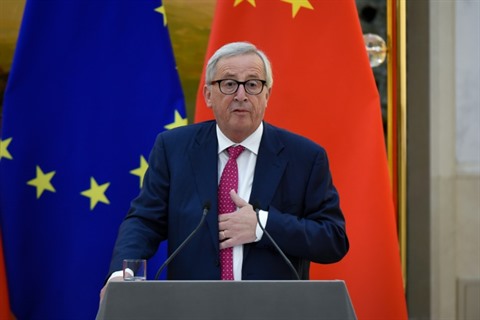 | Jean-Claude Juncker s'exprime lors d'une conférence de presse à Pékin, le 16 juillet. |