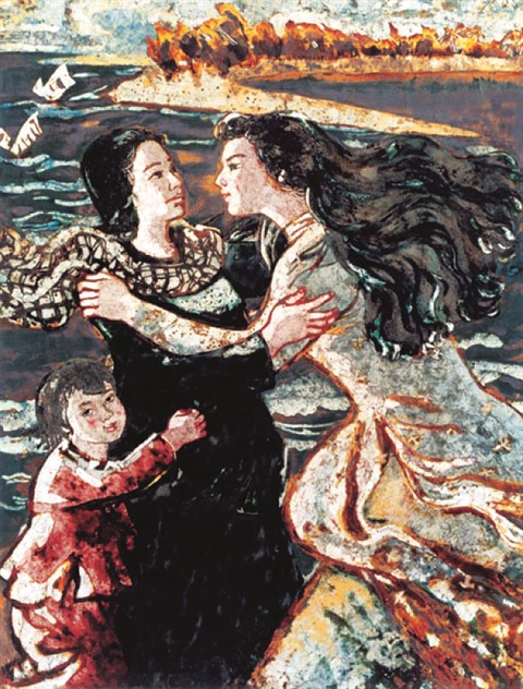 | La laque poncée "Nam Bac môt nhà" du peintre Nguyên Van Ty. |