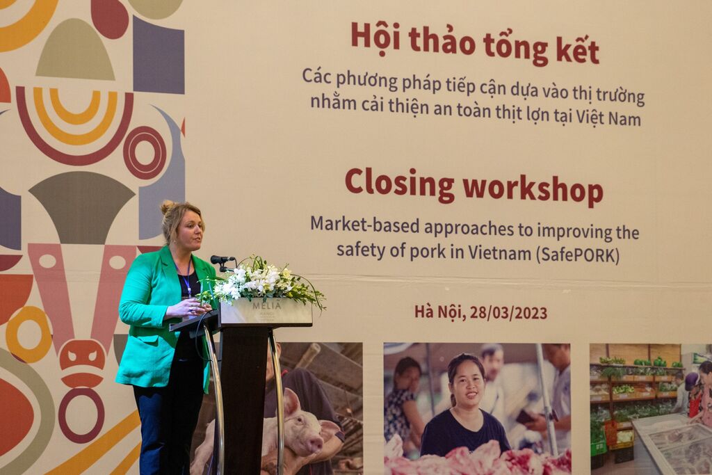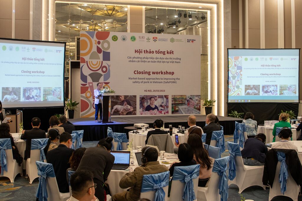 Lors de l'atelier, les intervenants ont partagé les conclusions clés pour rendre le porc plus sûr tout au long de la chaîne de valeur des petits exploitants. L'équipe "Approches basées sur le marché pour améliorer la sécurité de la viande de porc au Vietnam", SafePORK, a également discuté des moyens d'étendre les interventions du projet et communiqué avec les parties prenantes et les décideurs de politiques sur leur agenda de développement de certains projets et initiatives.