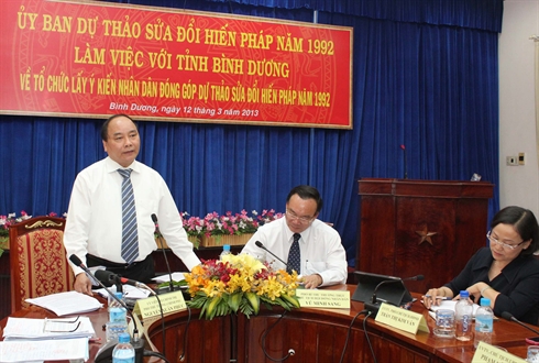 Une délégation du Comité du projet de révision de la Constitution de 1992, dirigée par le vice-Premier ministre Nguyên Xuân Phúc, membre dudit Comité, s'est rendue le 12 mars dans la province de Binh Duong (Sud) pour y superviser la collecte des avis de la population. Il faut consulter largement la population, a-t-il insisté.