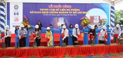 | La cérémonie de mise en chantier du centre de sauvegarde de données de HOSE, le 3 mai à Hô Chi Minh-Ville. |