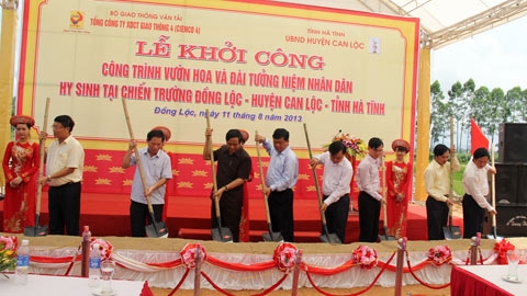 | Hà Tinh célèbre la victoire du carrefour de Dông LôcCérémonie de mise en chantier d’un parc et d’un monument aux morts pour la Patrie pendant la guerre contre les impérialistes américains, le 11 août à Dông Lôc. |