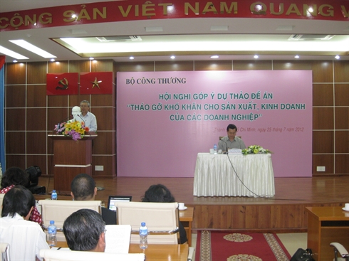 | Séminaire donnant des opinions sur le projet «Dégager les difficultés des entreprises dans la production et le commerce», le 25 juillet à Hô Chi Minh-Ville. Photo : Dang Huong/CVN |