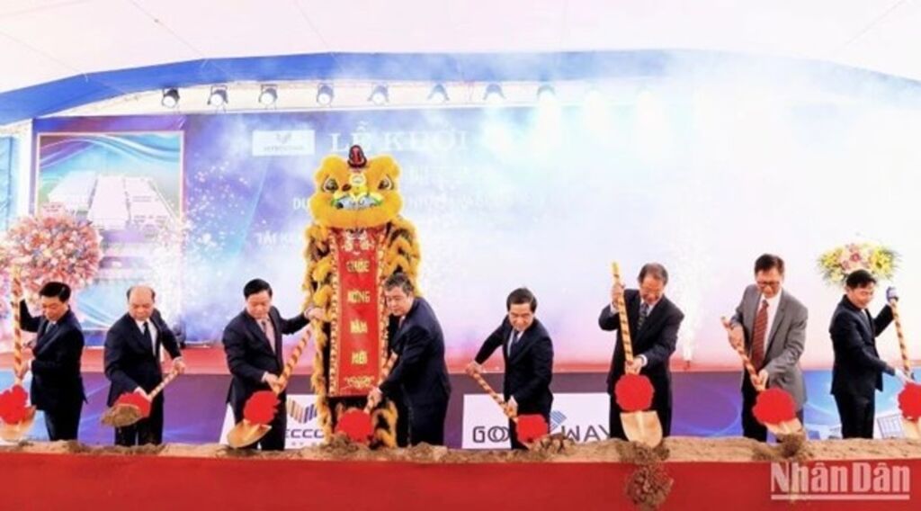 | Cérémonie de mise en chantier d'une usine de production des ordinateurs et leurs équipements périphériques dans la zone industrielle de Liên Hà Thai à Thai Binh. |