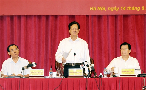 | Le Premier ministre Nguyên Tân Dung (centre) travaille avec les dirigeants du ministère de la Construction, le 14 août à Hanoi. |