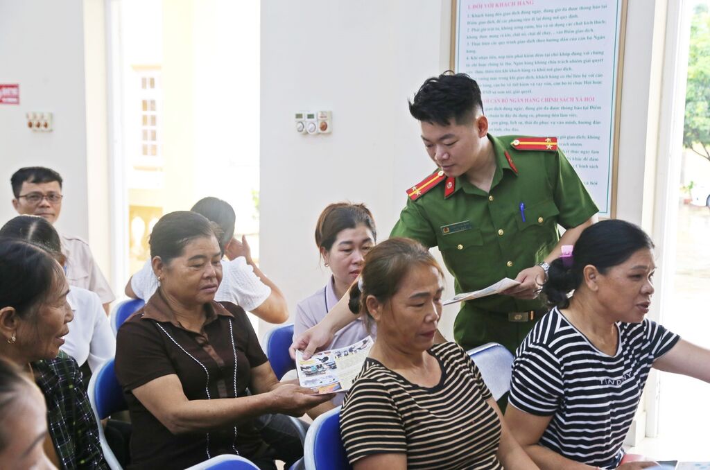 | La police de la province de Lang Son (Nord) distribue des brochures de sensibilisation à la lutte contre la traite des êtres humains et l’appropriation frauduleuse de biens sur l’espace numérique. |