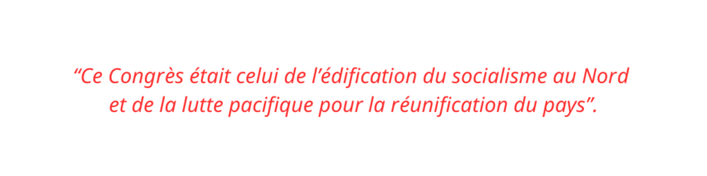 Il a affirmé : "Ce Congrès est celui de l’édification du socialisme au Nord et de la lutte pacifique pour la réunification du pays".