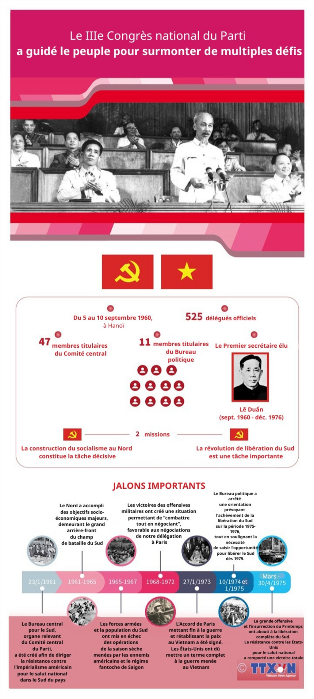 | Le IIIe Congrès national du Parti des travailleurs du Vietnam (du 5 au 10 septembre 1960), à Hanoï. |