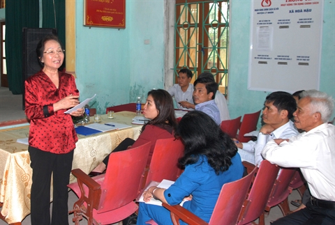| La vice-présidente de la République, Nguyên Thi Doan (debout), lors d'une rencontre avec des électeurs de la province de Hà Nam (Nord). |