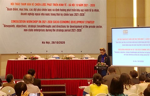 Le séminaire de consultation sur le projet de Stratégie de développement socio-économique pour la période 2021-2030 a permis de recueillir des idées et opinions de nombreux experts et responsables d’associations d’entreprises, d’universités, ainsi que celles de partenaires de développement, sur les points de vue, les objectifs, les percées stratégiques à réaliser et les orientations de développement du secteur privé qui joue un rôle croissant pour le développement national, dans la période stratégique 2021-2030, a déclaré Nguyên Van Vinh, directeur adjoint de l’Institut des stratégies de développement du Vietnam.
