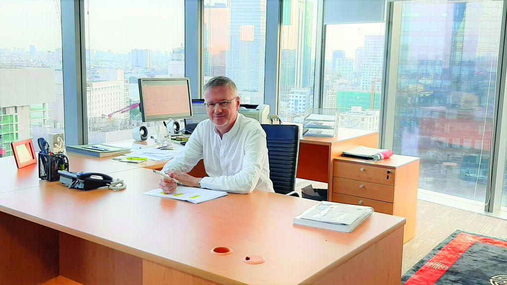 | Jean-Pierre Muller dans son bureau de l’AWEX à Hô Chi Minh-Ville. |