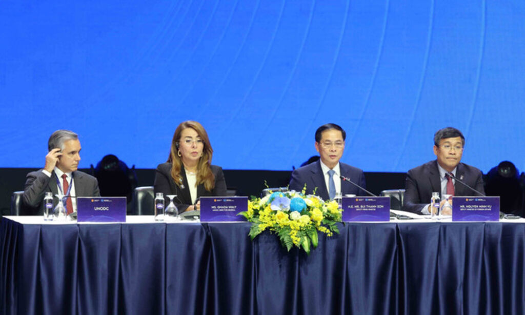 | La session de haut niveau est coprésidée par le vice-Premier ministre vietnamien Bùi Thanh Son (2e à droite) et la directrice exécutive de l'ONUDC, Ghada Waly. |