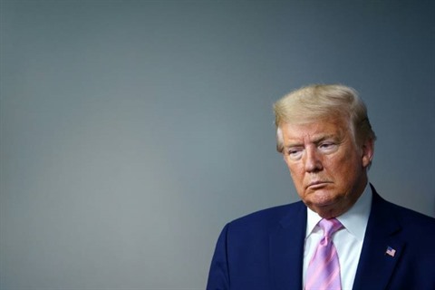 | Le président américain D. Trump lors d'une conférence de presse à la Maison Blanche sur la pandémie de coronavirus, le 1er avril. |