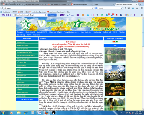 | La page web de l'Association de l'espéranto du Vietnam. |